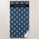 Fleur de Lis, Beige on Navy Blue, Royal, Your Name Beach Towel