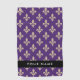 Fleur de Lis, Beige on Purple, Royal, Your Name Golf Towel