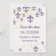 Make sure your friends and loved ones are there for your day with these Save the Date cards featuring a cascade of Fleur de Lis symbols in a yellow and purple design. All text is customisable, making these cards suitable for your wedding, New Orleans or Mardi Gras event.