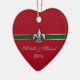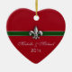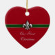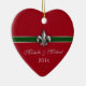 Your first Christmas together as a couple is special. Commemorate that first holiday season with this heart shaped Green, Red and Silver design Fleur de Lis ornament personalised on the front with your names and wedding date, or change the text to the year. The back reads Our First Christmas. Keep the text or change it using the template.