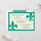 These stylish invitations feature two Fleur de Lis symbols and are perfect for any event from bridal showers to dinner parties to anniversary celebrations. Featured here with Emerald Fleur de Lis symbols and border on a light beige background. Visit www.zazzle.com/enchantedbayou* for New Orleans and Cajun themed cards, invitations and gifts. The invitation is fully customisable.