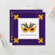 Let the good times roll this Mardi Gras with these Fleur de Lis Mask Mardi gras Party Invitations. The square invitations feature an indigo purple border with gold Fleur de Lis symbols gracing the corners around a Mardi Gras mask on a white background accompanied by the text "Laissez les bons temps rouler" (New Orleans French for "Let the good times roll" . Add your party information to the back using the template. The text on the back is fully customisable making these invitations suitable for any Mardi gras themed event. Click "customise" to make changes to the font and text placement or to add your own images.