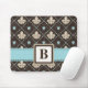 A pretty monogrammed eggshell blue and brown fleur de lis mouse pad can be customised and personalised with your monogram initial. Design © Chrissy H. Studios, LLC. All Rights Reserved.