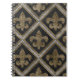 Fleur-de-lis mosaic tile pattern black and gold notebook