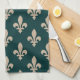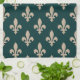 Fleur de Lis Pattern, Royal French Cream on Green Tea Towel