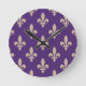 Fleur de Lis Pattern, Royal French Cream on Purple Round Clock