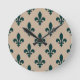 Fleur de Lis Pattern, Royal French Green on Cream Round Clock