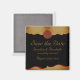 Personalize this elegant golden scrolls, red ribbons and fleur de lis wax seal custom save the date magnets with your own personal information by clicking the customize button.