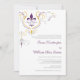 A fleur de lis wedding invitation in gold, purple, and silver, perfect for your New Orleans wedding! The text colour, size, and placement can be changed by clicking the "Customise It" button. www.DigbyRose.com