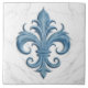 Fleur-De-Lis White and Blue Marble Ceramic Tile