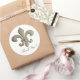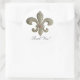 Silver glittery fleur de lis with pink bling against dark black background. White script text says Thank you! Easily change background colour and text to match your envelopes. Perfect fleur de lis envelope seals for the New Orleans bride.