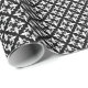 The wrapping paper features a fleur de lis pattern in white on a background of ebony. An elegant, classic design for any gift giving occasion.