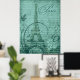 Fleur de Paris Eiffel Tower 30"x40" teal Poster