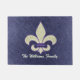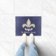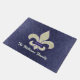 Stylish purple door mat, with a large Fleur Di Lys, in the centre. Personalise the text to read what you want.