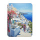 A stylish flexible photo magnet with a watercolor image of picturesque Santorini. White houses with blue domes, azure sea, and blooming bougainvillea create an atmosphere of romance and relaxation. In the corner of the magnet is a delicate inscription “With love”, which makes it a wonderful souvenir, a gift for loved ones or a memorable accessory after a trip. Such a magnet will be a beautiful accent on the refrigerator or in a traveller's collection.