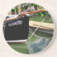 Sandstone coaster- flicka sailboat bow sprit along side dock with green background