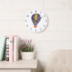 Beautiful wall clock with hot air balloon watercolor art. Add custom background color.