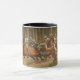 This design features a painting by the Swiss artist Eugène Burnand (1850–1921). It depicts a historical scene. It depicts the historical French King Charles the Bold fleeing from the Battle of Morat in 1476. He was again defeated by the Swiss army, which was assisted by the cavalry of the Duke of Lorraine, and he lost around one third of his entire army. Charles the Bold had to escape on horseback in order to save his own life. The painting shows knights riding horses furiously through a woodland landscape. The knights are in full suits of armour and they are holding lances and swords as weapons. There are some hunting dogs with the royal army too. The horses have coats of various colours, including black, brown, grey and white. The horses are decked out in royal regalia showing a coat of arms. There are tall trees growing in the densely forested woods in the background. The original artwork was painted by Eugène Burnand in 1895.