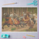This design features a painting by the Swiss artist Eugène Burnand (1850–1921). It depicts a historical scene. It depicts the historical French King Charles the Bold fleeing from the Battle of Morat in 1476. He was again defeated by the Swiss army, which was assisted by the cavalry of the Duke of Lorraine, and he lost around one third of his entire army. Charles the Bold had to escape on horseback in order to save his own life. The painting shows knights riding horses furiously through a woodland landscape. The knights are in full suits of armour and they are holding lances and swords as weapons. There are some hunting dogs with the royal army too. The horses have coats of various colours, including black, brown, grey and white. The horses are decked out in royal regalia showing a coat of arms. There are tall trees growing in the densely forested woods in the background. The original artwork was painted by Eugène Burnand in 1895.