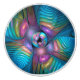 A multicolored, swirling fractal image resembling textured wings surrounding a central sphere. The fractal image is repeated in miniature on the sphere.