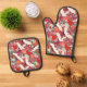 Flight of the Cranes Red Oven Mitt & Pot Holder Set