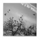 Black birds roost in a tree while a few of their members take flight. Hang this wherever you need nature's inspiration today!