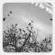 Black birds roost in a tree while a few of their members take flight. Decorate with nature's inspiration today!