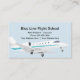 Private plane pilot school instructor business card design created with image of a private jet and simple layout. Created for a flying school, pilot training class, or maintenance services.