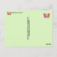 This bright pink butterfly cartoon says "I Larvae You" on front. On back reads "Flight hearted wishes". All text can be customised. This whimsical butterflies can uplift anyones spirits and lighten the mood for any occasion. Their funny expressions are perfect for Thank You or Valentines Day or Birthday fun.