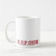 Mug with phrase "Gymnasts don't defy gravity, they defeat it" on one side and "The Flip Centre Yukon, Oklahoma" on the other side.