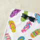 This beautiful beach towel features an adorable pattern of flip flop sandals in different colours and patterns on a white background. The background is transparent, so you can change it if you like. Just click the "Customise" button, then select a “Printed Background Colour” in the sidebar.