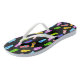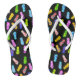 A cute pair of flip flops featuring a colourful flip flop sandal pattern on a black background! The perfect vacation accessory for someone who loves flip flops and bright patterns.