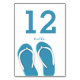Printed table number card with blue flip flops for any beach or summer wedding or to compliment our wedding invitation set, can be personalised and ordered individually.