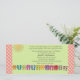 A bright and cheerful design perfect for late spring and all summer long. The design features a melon-coloured argyle pattern on the sides and the centre has a dozen pairs of decorated flip flops. The sun shines high in the front and low in the back. Let the summer fun begin with this delightful invitation.