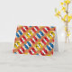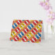 Nothing says summertime like a pair of fabulous flip flops. The whimsical pattern embellishing this card features them in primary hues of red, blue and yellow lined up against loosely woven sand coloured stripes.