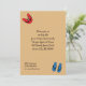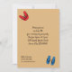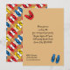 The whimsical pattern on this invitation features flip flops in primary hues of red, blue and yellow lined up against loosely woven sand coloured stripes with black accents on the one side and black text against a sand coloured background on the back that is perfect to customise for summer pool or beach parties, or for the fourth of July.