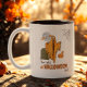 This Halloween ceramic mug is for the ghoul who sips with sass and brews with bravado. Featuring a bold vector skeleton cloaked in tattered orange robes, rising from behind a mossy gravestone, this design is haunted, hilarious, and perfect for spooky season caffeine rituals. A glowing full moon, drifting clouds, and a creeping spider web set the scene, while a lone pumpkin and falling leaf add festive flair.