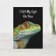 Cute flirting card for a boyfriend or girlfriend. A lizard Iguana with a black background. I got my eye on you, cuz you're kinda cute.