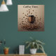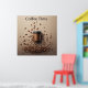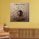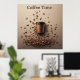 A disposable takeout coffee cup floats at the centre, surrounded by rich coffee beans. Warm, cafe-inspired energy evokes morning routines, grab-and-go culture, and cosy beverage moments.