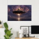Floating Fantasy Castle Cloud Beams Glow Poster
