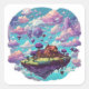 STICKER, a group of floating islands floating in the sky, clouds, minimal, sticker, logo, digital art, spirit, colour scheme: #38beb9 and #a34e9d, purple and teal colour scheme, fantasy, magical, cosy, heartwarming, comfortable, intricate, highly detailed, 8k, stardew valley style, harvest moon style