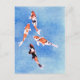 Coloured pencil illustration of four Koi or Carp, floating in a pond of blue water, a delightful gift for anyone who loves fish or nature. Also matches the: