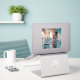 A dreamlike surreal portrait: a floating mirror panel rises from a calm sea as a splash crown and ripples frame a serene woman’s face. Liquid surfaces mirror the pastel cloud sky, creating luminous reflections and a soft cyan–peach palette. Printed on aluminium via dye-sublimation for vivid colour, crisp details and deep blacks. Choose gloss for high-impact shine or matte for a refined, glare-free look. Ships ready to hang with a floating mount; UV/moisture-resistant—ideal for bedrooms, living rooms, studios and modern offices.