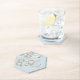 A retro mod coaster featuring grey and white circles on a light blue background.