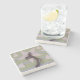 The coasters are gorgeous, a quality feel and heavy weight. They look like a precious archeological find. A rustic stone juxtaposed with a modern floral black and white print. I like the way the print goes slightly imperfect on the cut stone edges giving them a kind-of natural beauty.