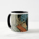 The pictured geisha is hiding behind a screen from a man hunting with an upturned samuri blade. The full ukiyo-e theatre print will be released shortly as a fine art print. The original print dates from the 1800s and probably comes from Edo. This mug is part of a series.