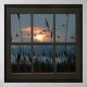 Window Illusion Flock of Birds Poster (Black fake window frame)