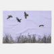 Four ravens flying on a cloudy day. The collective noun for ravens (as in a gaggle of geese) is an “unkindness” and when I see a group of them fly over I always get the impression I am watching a street gang. They are fairly heavy birds and you can hear their wings – swish, swish, swish – beat the air as they pass by. Ravens, found across the northern hemisphere, typically live about 10 to 15 years in the wild, although lifespans of up to 40 years have been recorded. Young birds may travel in flocks, but later mate for life, with each mated pair defending a territory. The Common Raven has coexisted with humans for thousands of years and in some areas has been so numerous that it is considered a pest. Part of its success comes from its omnivorous diet; Common Ravens are extremely versatile and opportunistic in finding sources of nutrition feeding on carrion, insects, cereal grains, berries, fruit, small animals, and food waste. Some remarkable feats of problem-solving have been observed in the species, leading to the belief that it is highly intelligent. Over the centuries, it has been the subject of mythology, folklore, art and literature. In many indigenous cultures, including those of Scandinavia, ancient Ireland and Wales, Bhutan, the northwest coast of North America, Siberia and northeast Asia, the Common Raven has been revered as a spiritual figure or god. Ravens are classified as songbirds. Though I have never thought of them as particularly musical they do make a very large number of sounds. Ravens mimic sounds from their environment, including human speech. Ravens are highly intelligent. Their brains are among the largest of any bird species. They display problem solving abilities, as well as other cognitive processes such as imitation and insight. One experiment involved a piece of meat attached to a string hanging from a perch. To reach the food, the bird needed to stand on the perch, pull the string up a little at a time, and step on the loops to gradually shorten the string. Four of five Ravens eventually succeeded, and “the transition from no success (ignoring the food or merely yanking at the string) to constant reliable access (pulling up the meat) occurred with no demonstrable trial-and-error learning” This supports the hypothesis Ravens are ‘inventors’; that is, they have the ability to solve problems presented to them. Many of the Raven’s problem-solving skills were formerly thought to be instinctive, but it is becoming clear that Common Ravens are actually quite intelligent. Ravens have been observed to manipulate others into doing work for them, such as by calling wolves and coyotes to the site of dead animals. The canines open the carcass, making it more accessible to the birds. They watch where other birds bury their food and remember the locations of each other’s food caches, so they can steal from them. This type of theft occurs so regularly that Ravens will fly extra distances from a food source to find better hiding places for food. They have also been observed pretending to make a cache without actually depositing the food, presumably to confuse onlookers. Ravens living in urban environments have been known to drop nuts that they are incapable of cracking open with their beaks into busy road intersections. They allow the traffic to drive over them, crushing the nuts. When the traffic stops, they swoop down and pick up the nuts to eat. Biologists have recognised that birds engage in play. Juvenile Ravens are among the most playful of bird species. They have been observed to slide down snowbanks, apparently purely for fun. They even engage in games with other species, such as playing catch-me-if-you-can with wolves and dogs. Ravens are known for spectacular acrobatic displays, such as flying in loops or interlocking talons with each other in flight. Ravens are one of only a few species who make their own toys. They have been observed breaking off twigs to play with socially. Across its range in the northern hemisphere, and throughout human history, the Common Raven has been a powerful symbol and a popular subject of mythology and folklore. In many post-conversion Western traditions, ravens have long been considered to be birds of ill omen, in part because of the negative symbolism of their all-black plumage and eating of carrion. In Sweden, ravens are known as the ghosts of murdered people, and in Germany as the souls of the damned. In Danish folklore, a Valravn that ate a king’s heart gained human knowledge, could perform great malicious acts, could lead people astray, had superhuman powers, and were “terrible animals”. It continues to be used as a symbol in areas where it once had mythological status: as the National Bird of Bhutan, Official Bird of the Yukon territory, and on the Coat of Arms of the Isle of Man (once a Viking colony). Many indigenous peoples of the Pacific Northwest Coast of North America and northeast Asia revered it as a god. In Tlingit and Haida cultures, Raven was both a Trickster and Creator god. Related beliefs are widespread among the peoples of Siberia and northeast Asia. The Kamchatka peninsula, for example, was supposed to have been created by the raven god Kutkh. There are several references to Common Ravens in the Old Testament of the Bible and it is an aspect of Mahakala in Bhutanese mythology. The Norsemen believed that ravens Hugin and Munin sat on the god Odin’s shoulders and saw and heard all, and a Raven banner standard was carried by such Viking figures as the Norse Jarls of Orkney,King Canute the Great of England, Norway and Denmark, and Harald Hardrada. In the British Isles, ravens also were symbolic to the Celts. In Irish mythology, the goddess Morrígan alighted on the hero Cú Chulainn’s shoulder in the form of a raven after his death. In Welsh mythology they were associated with the Welsh god Bran the Blessed, whose name translates to “raven.” According to the Mabinogion, Bran’s head