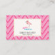 Modern professional business cards with a graphic illustration of a pink flamingo. Text says: Flocking Fabulous. Hand drawn pink chevron stripes in the background.