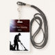 Clean and simple floor cleaning business staff work badges in a modern design with graphic of a floor cleaning professional on the job and graphic of nice wood floors in the background with editable text you can personalise online and printed on both sides.